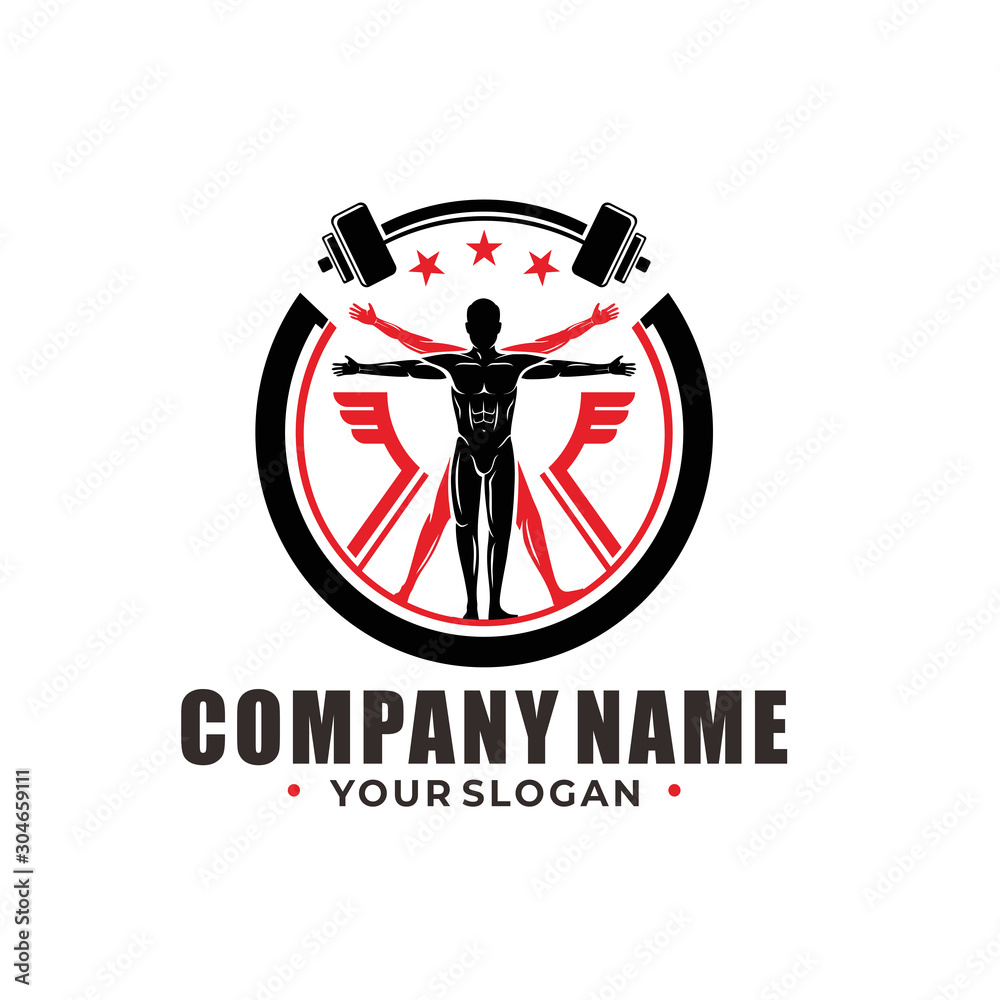 Vitruvian Man Leonardo Da Vinci Human Body Perfect Anatomy Proportions In Circle Logo Concept For Fitness Wall Mural Zaenal